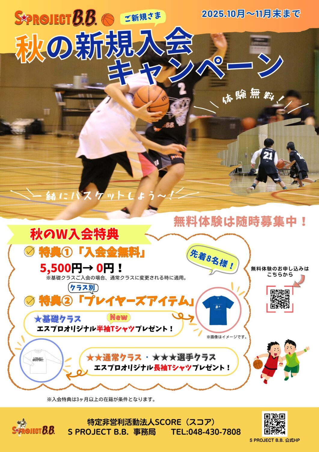 昨今のバスケ人気でやってみたい!と感じる子もいるのではないでしょうか。それなら、キャンペーンが始まった今がチャンス!エスプロでバスケ、やってみませんか?